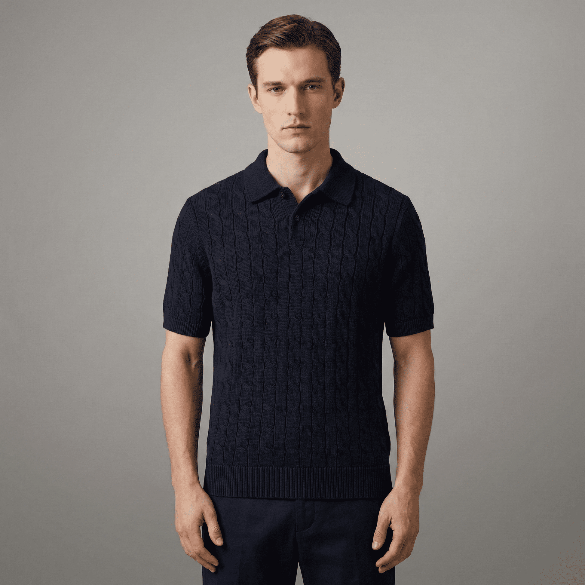 Cable-Knit Cotton Polo-Collar Jumper